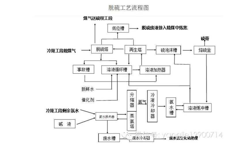 由焦?fàn)t送來的80-83℃的荒煤氣,沿吸煤氣管道入氣液分離器。經(jīng)氣液分離后,煤氣進(jìn)入初冷器進(jìn)行兩段間接冷卻;上段用32℃循環(huán)水冷卻煤氣,下段用16-18℃低溫水冷卻煤氣,使煤氣冷卻至22℃,然后經(jīng)捕霧器入電捕焦油器除去懸浮的焦油霧后進(jìn)入鼓風(fēng)機(jī),煤氣由鼓風(fēng)機(jī)加壓送至脫硫工段。