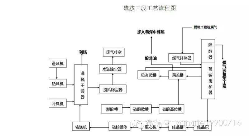 在飽和器的母液中不斷有硫銨晶體生成,用結(jié)晶泵將其連同一部分母液送至結(jié)晶槽分離,然后經(jīng)離心機(jī)分離、螺旋輸送機(jī)輸送至振動流化床干燥器干燥后入硫銨貯斗貯存、稱重、包裝后外售。